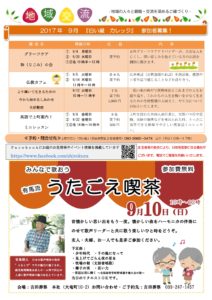 また、下部では、9月10日(日)に行われる、うたごえ喫茶イベントのご案内をしております。ご年配の方で歌が好きな方におすすめです。