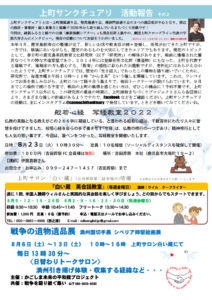 裏面には、上町サンクチュアリさんの活動報告を掲載。鹿児島県教育文化研究所の取り壊しは、新聞でも取り上げられ、各種団体が声明を発表するなど、上町地区の話題になっているようです。