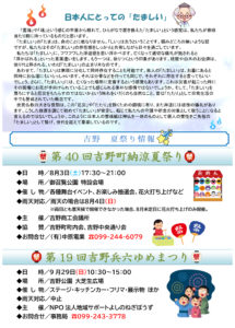 他にも、8月3日(土)には、よしだ夏祭りも開催されます。日本の心をお祭りで感じてみるのもいいかもしれませんね。
