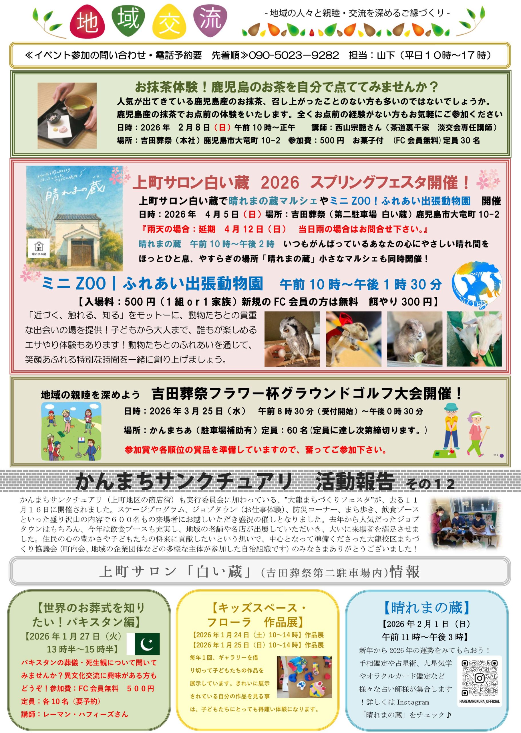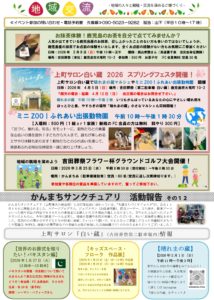 裏面には、吉田葬祭や上町サロン白い蔵で今後開催予定のイベントを掲載しております。